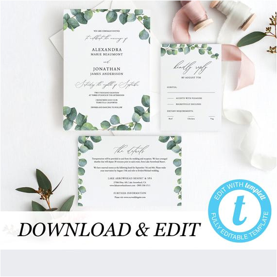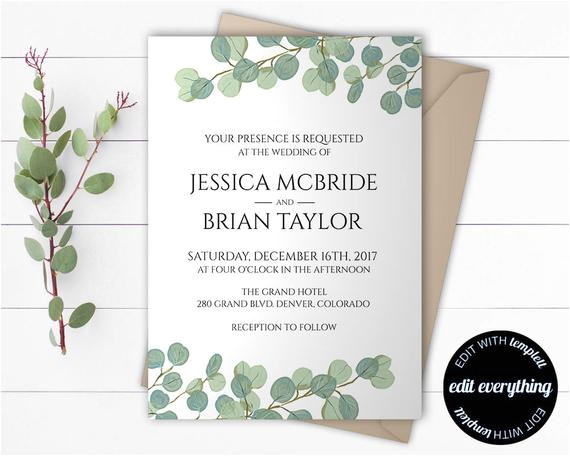 greenery wedding invitation template eucalyptus wedding from Eucalyptus Wedding Invitation Template