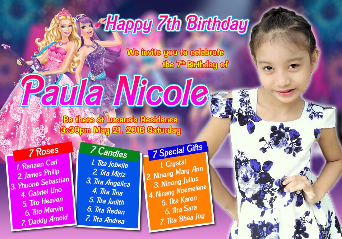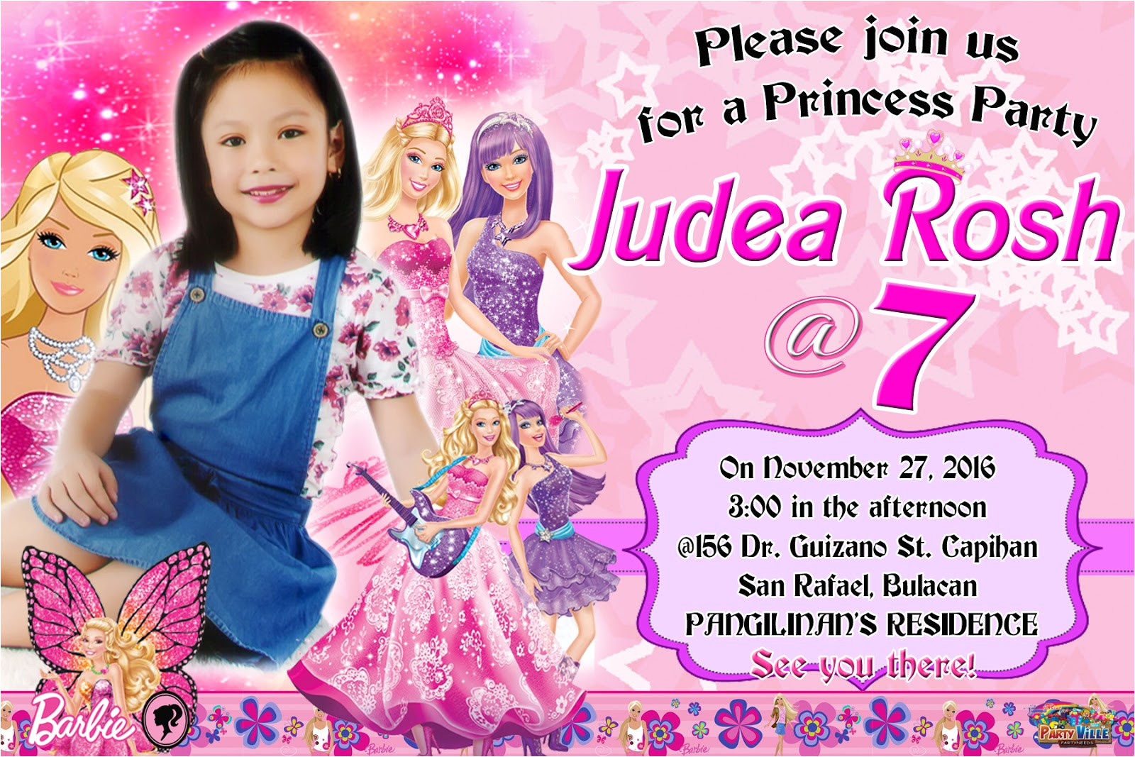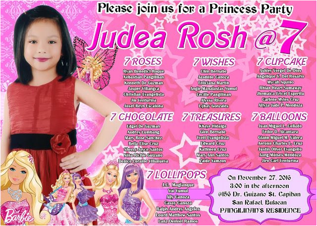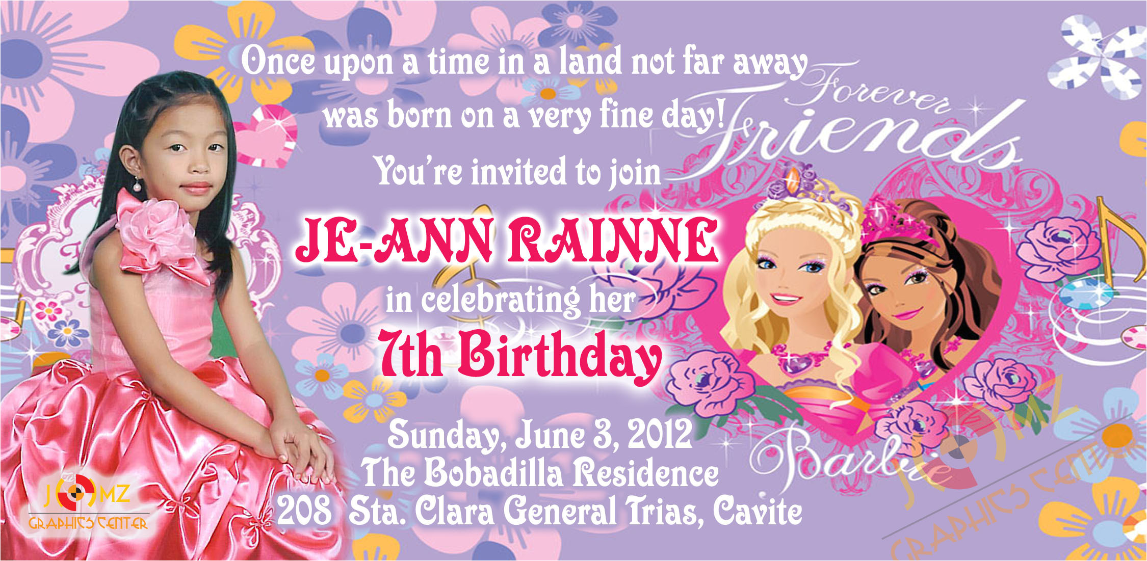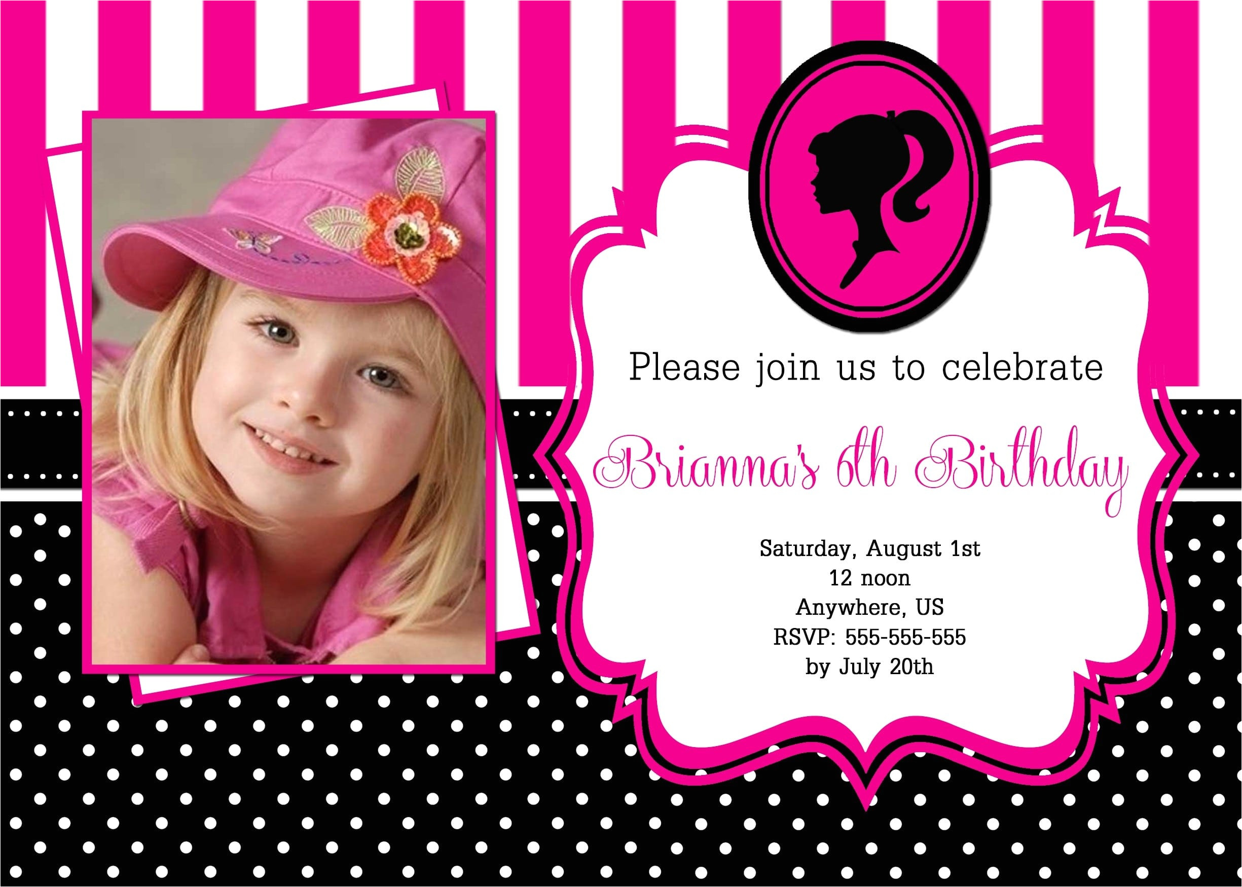 sample invitation barbie design template for seventh from Example Of Invitation Card For 7Th Birthday