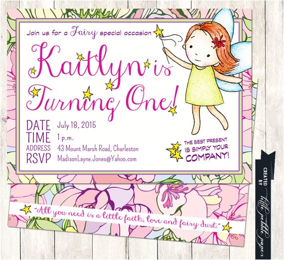 Fairy Invitation Fairy Birthday Invitation Floral Fairy from fairy 1st birthday invitations