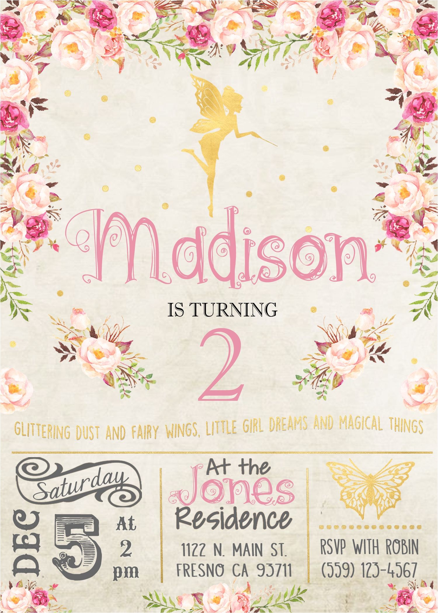 Fairy Invitation Fairy Birthday Invitation Floral Fairy from fairy first birthday invitations
