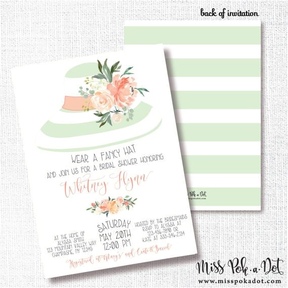 fancy hat bridal shower invitations sample: