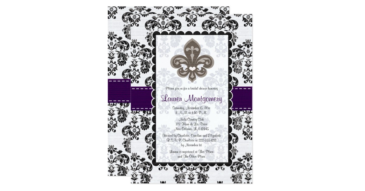 fleur de lis bridal shower invitations plum black zazzle from fleur de lis bridal shower invitations