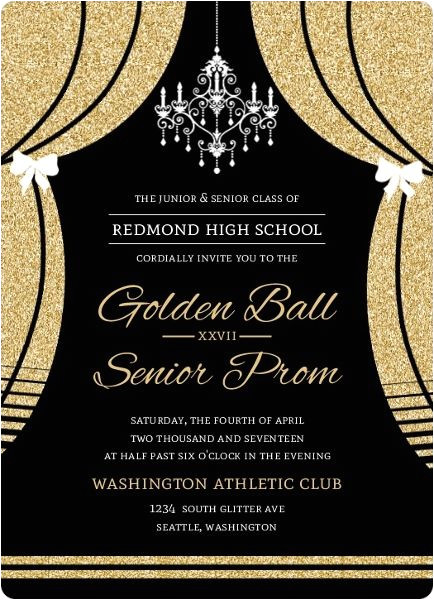 elegant faux gold glitter curtain prom invitation from Formal Party Invitation Template Free