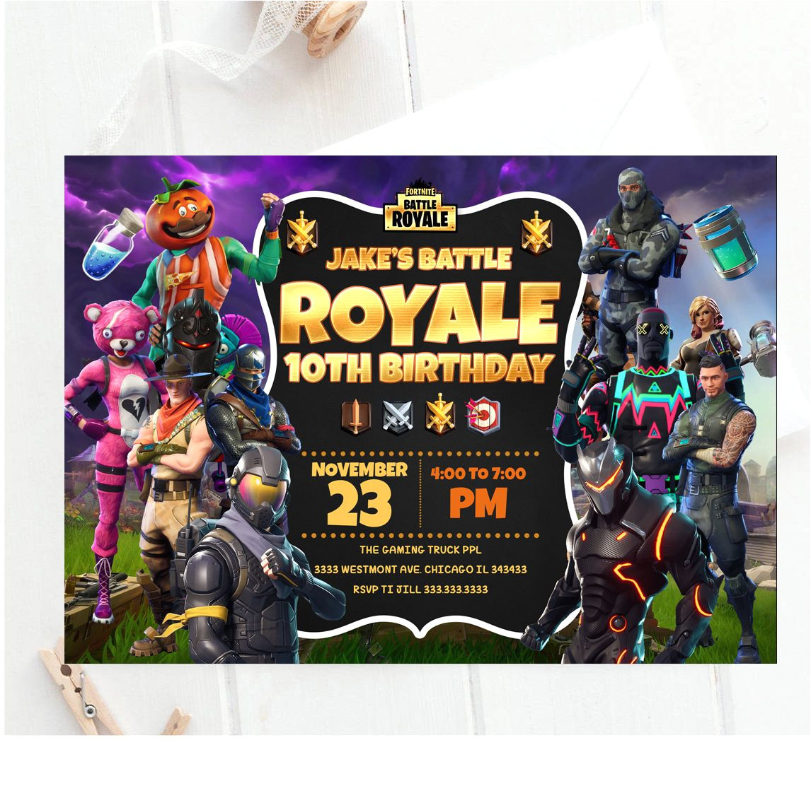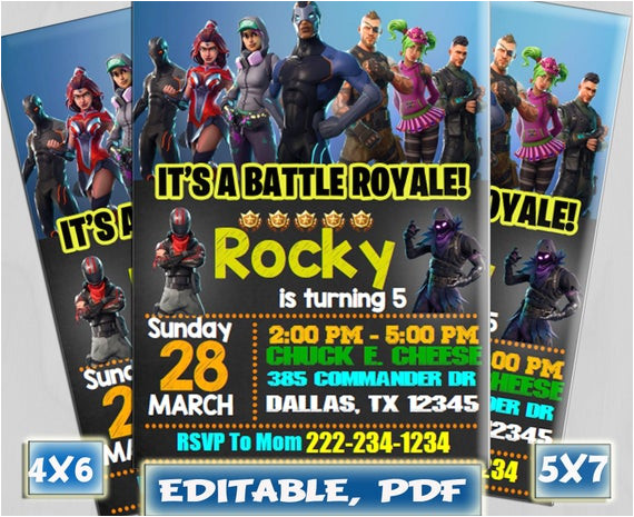this is a digital 5×7 invitation and no actual prints will from Fortnite Birthday Invitation Template