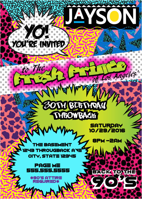 90 39 s theme fresh prince princess hip hop digital from Free 90S Party Invitation Template