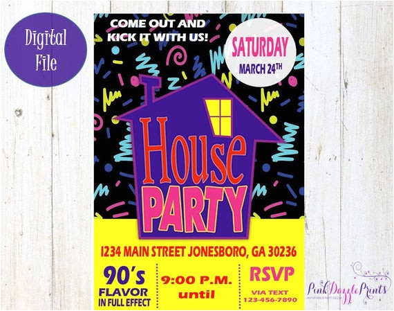 90 39 s theme house party digital birthday invitation from Free 90S Party Invitation Template