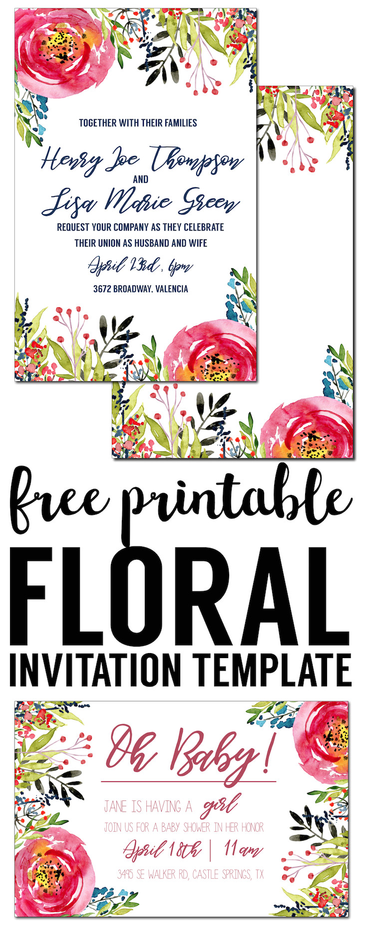 floral invitation template free printable paper trail from Free Birthday Invitation Template
