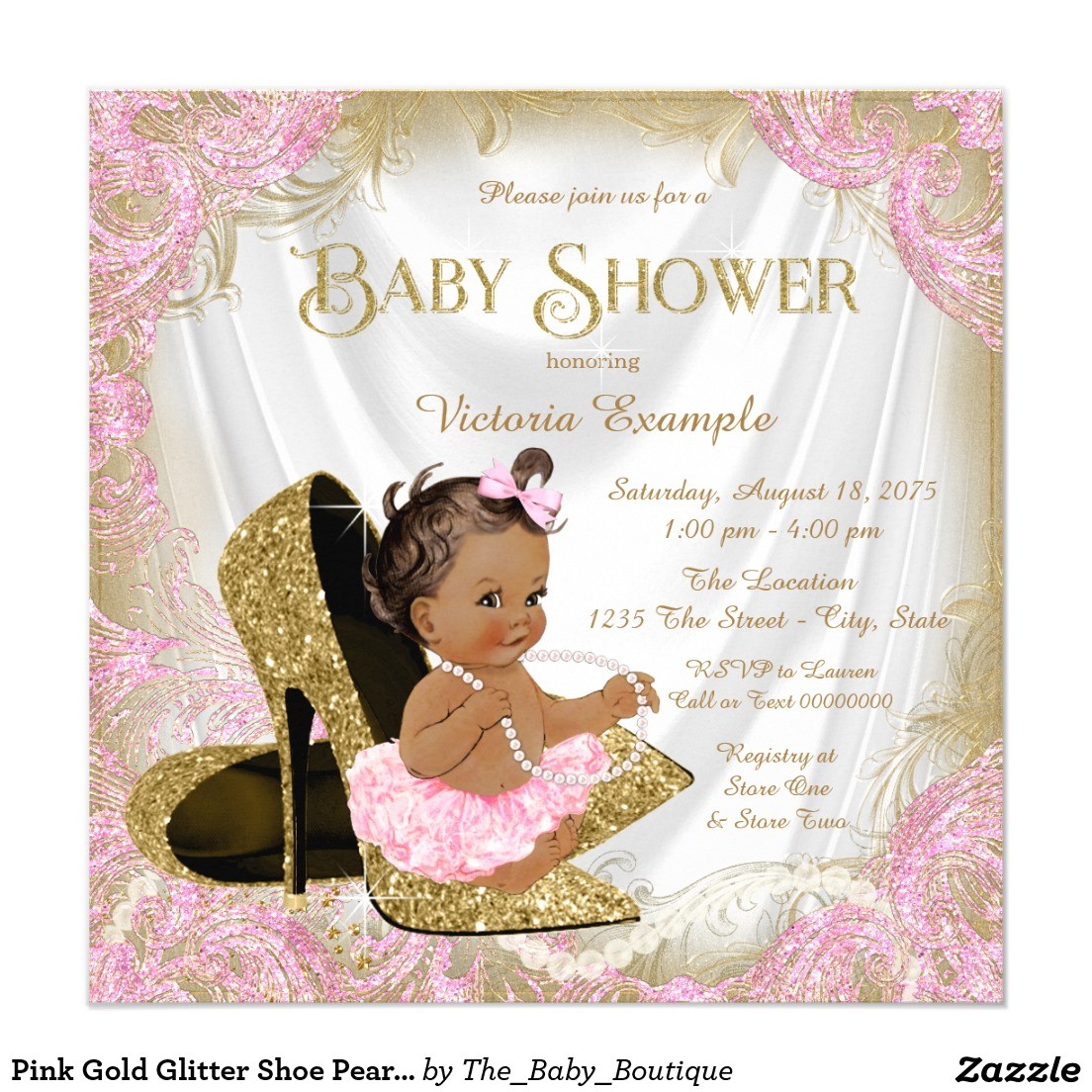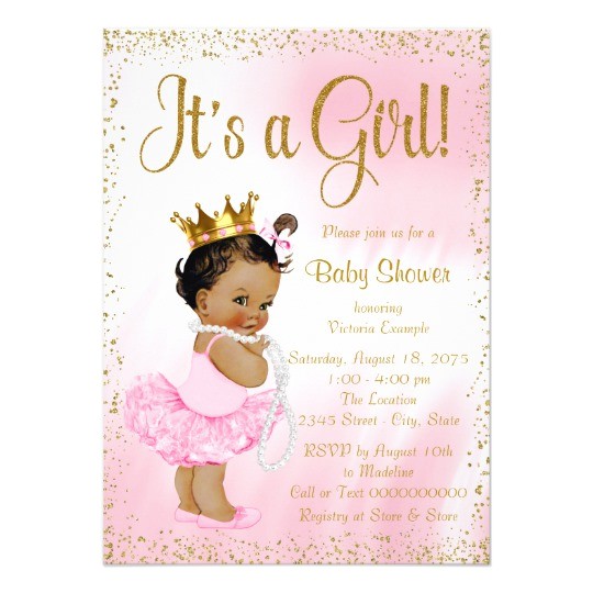 Pink Gold African American Princess Baby Shower Card from free printable african american baby shower invitations