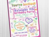 Tween Birthday Teen invitation Sleepover notebook doodle from free printable birthday invitations for tweens