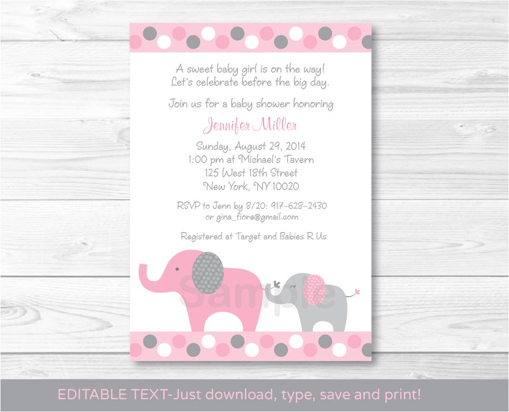 Back To Free Printable Pink Elephant Baby Shower Invitations