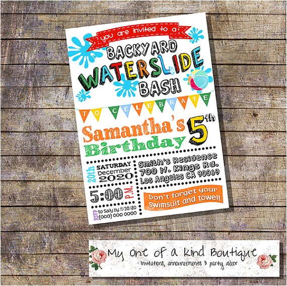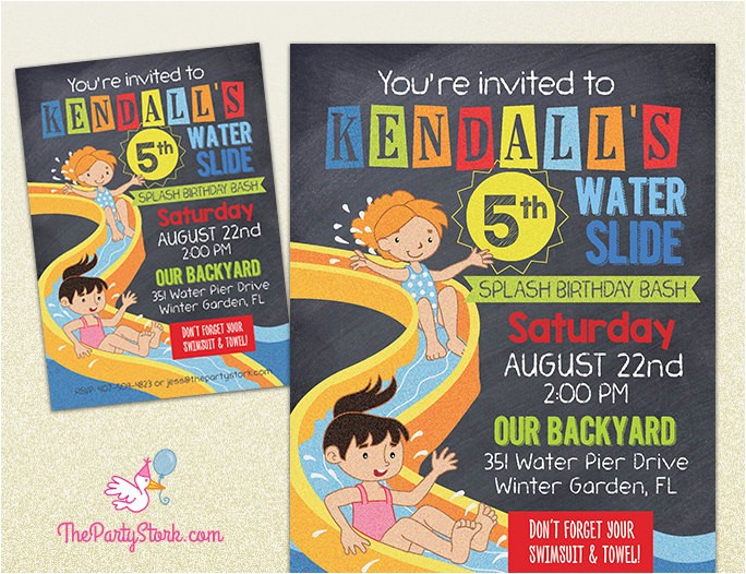 free water slide birthday party invitations