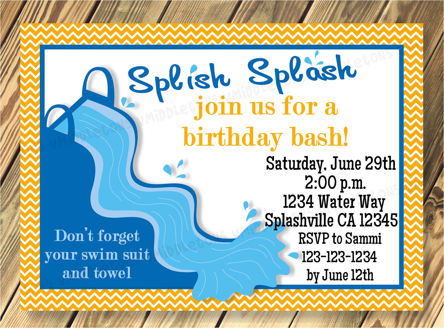 waterslide birthday party invitation