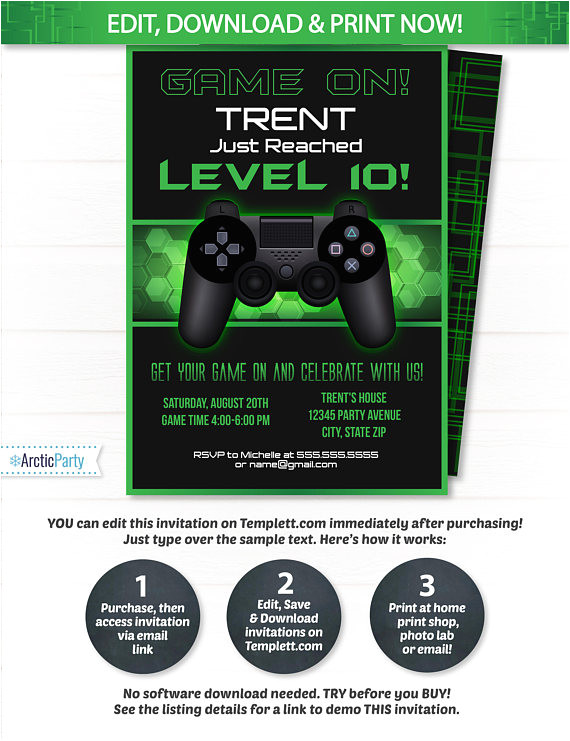 free game controller invitations in 2019 boy birthday from Free Video Game Birthday Invitation Template