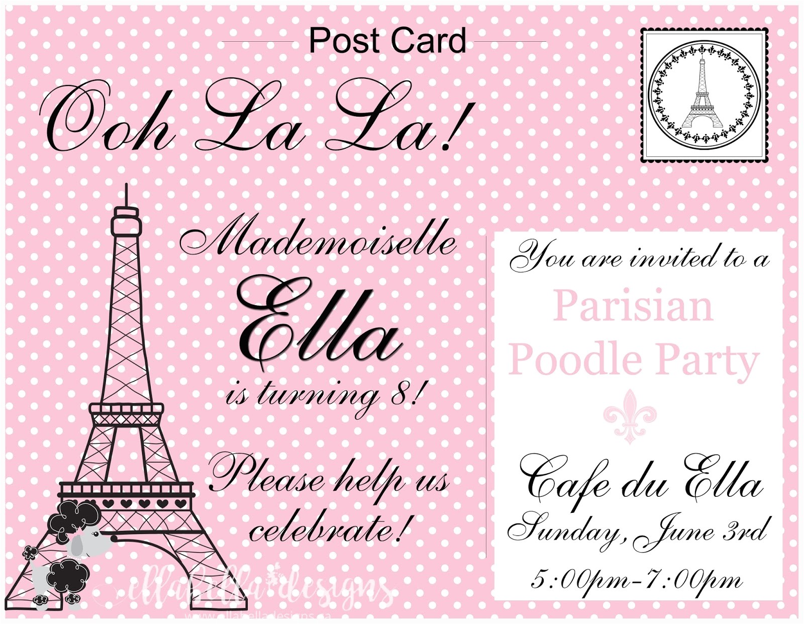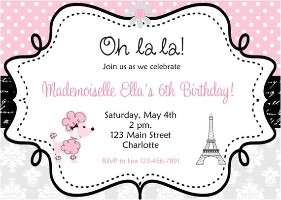 ellabella designs french pink poodle paris 8th birthday from french birthday party invitations