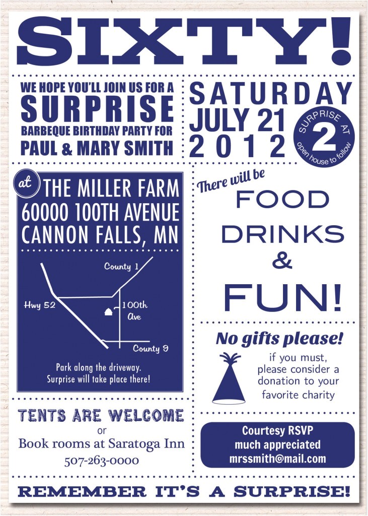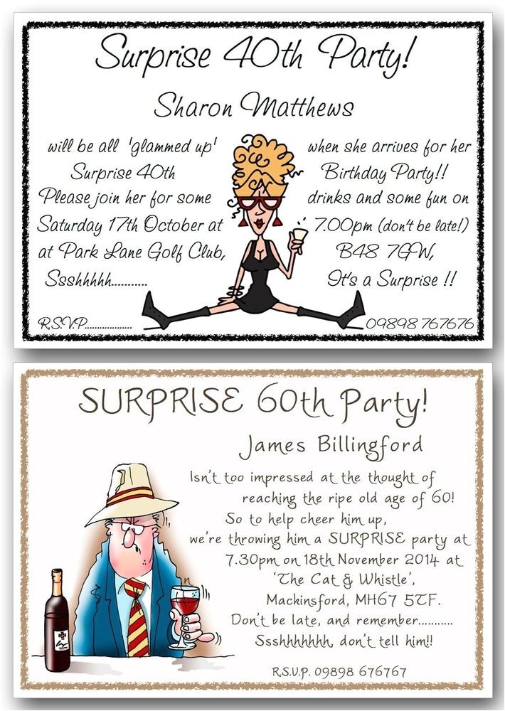 personalised surprise birthday party invitations 30th 40th from funny 60th birthday party invitations