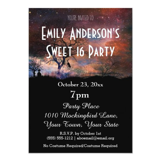 halloween galaxy costume sweet 16 birthday card zazzle com from Galaxy Birthday Invitation Template