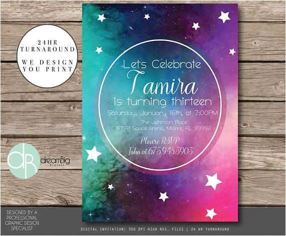 tween birthday galaxy invitation digital space invitation from Galaxy Birthday Invitation Template