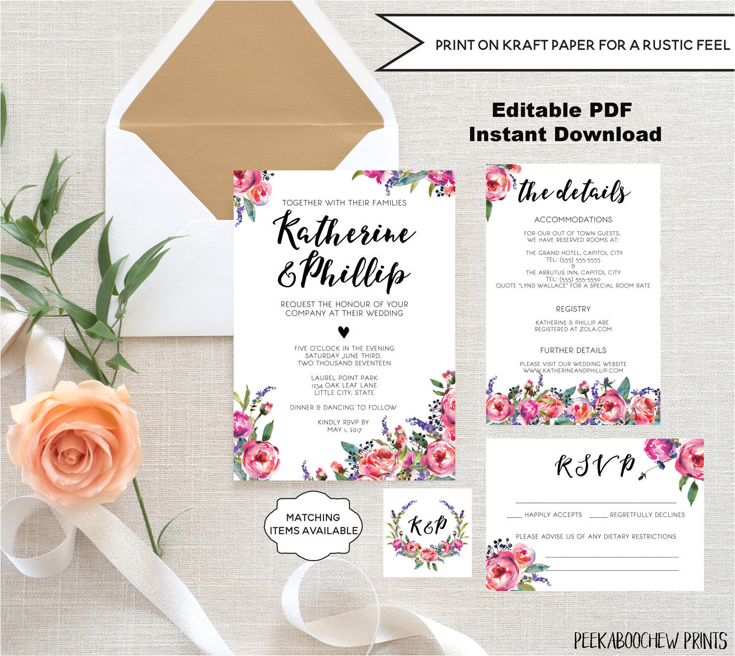 floral invitation template garden wedding invitation printable from Garden Wedding Invitation Template