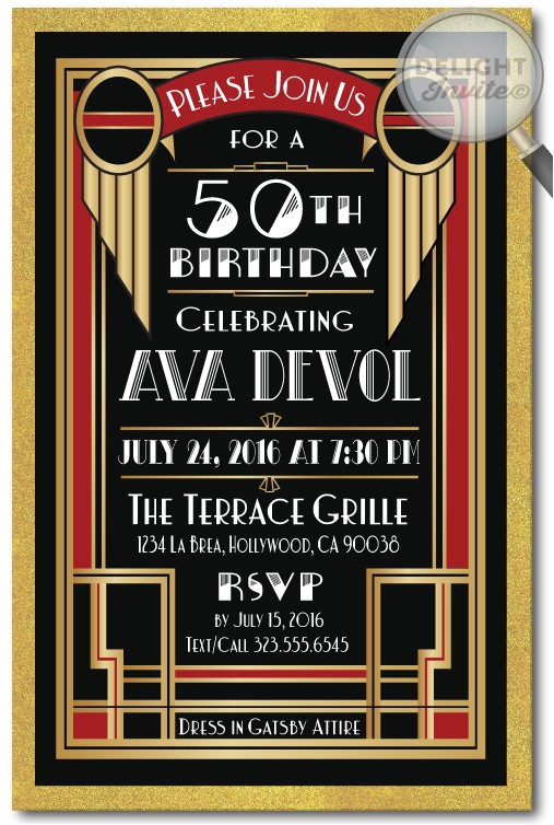 deco roaring 20 39 s great gatsby 50th birthday invitations from gatsby christmas party invitations
