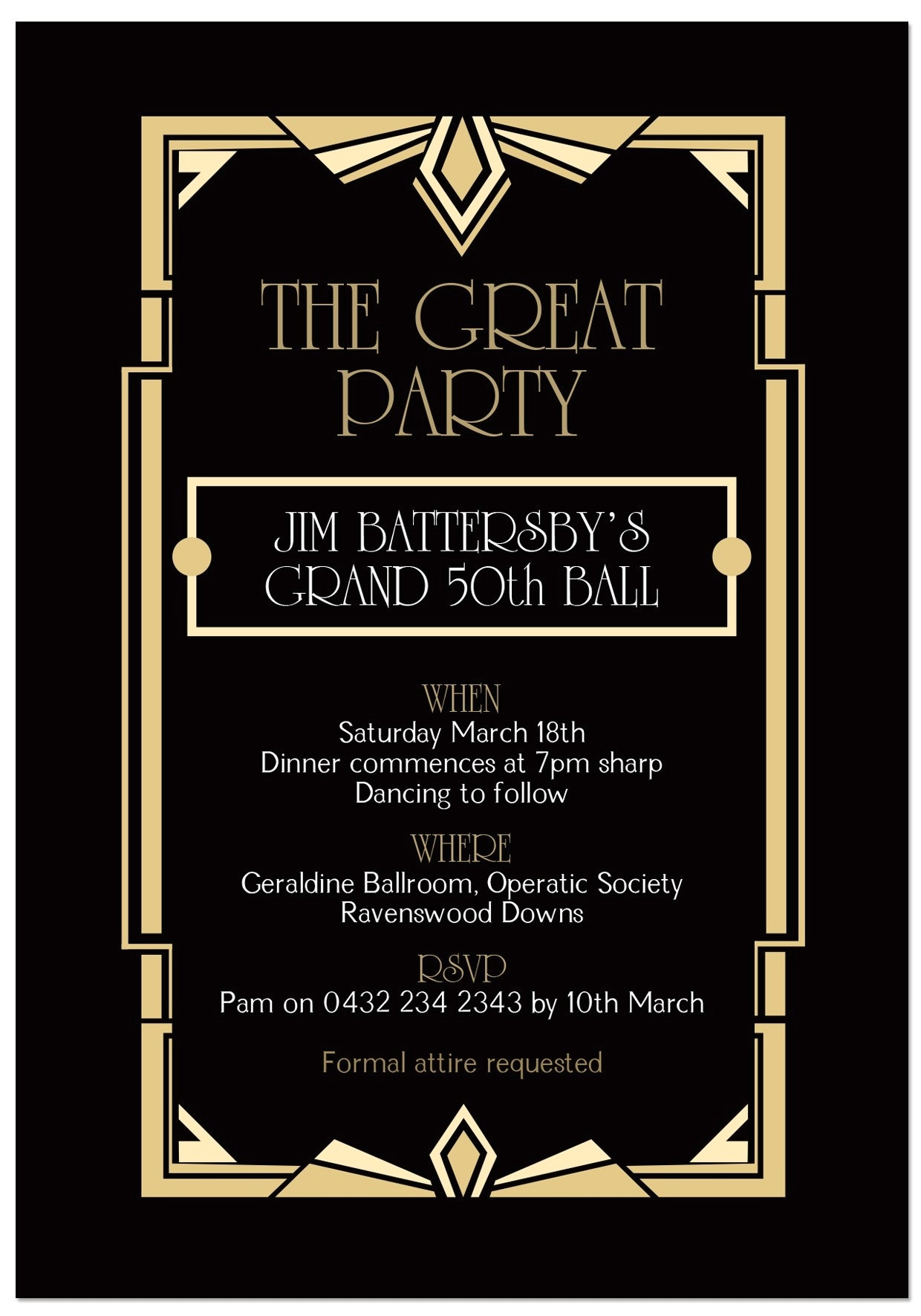 great gatsby invitation template 2018 world of reference from Gatsby Wedding Invitation Template Free