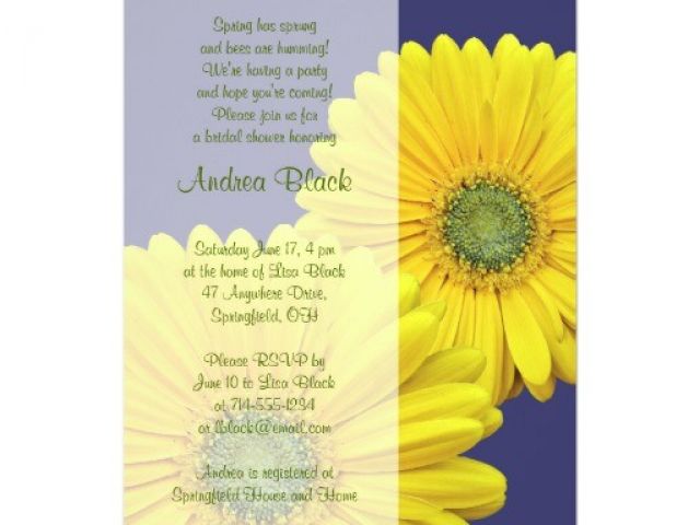 Gerbera Daisy Bridal Shower Invitations Yellow Gerbera Daisy Navy Bridal Shower Invitation and all other pictures, designs or photos on our website are copyright of their respective owners. we get our pictures from another websites, search engines and other sources to use as an inspiration for you. please contact us if you think we are infringing copyright of your pictures using contact page. we will be very happy to help you.