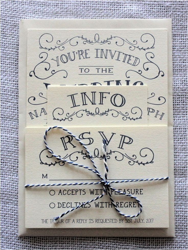 There are as well as many options for fusion and tie in wedding invitations. These are often sets of invitations that have many substitute options approachable for each of the pieces of your invitation set, from invitation paper to envelopes, fonts and scripts and more. By hand selecting these choices, you can make an individualized see to your invitations that speaks of the two of you as a couple without having identical invites that someone else has.