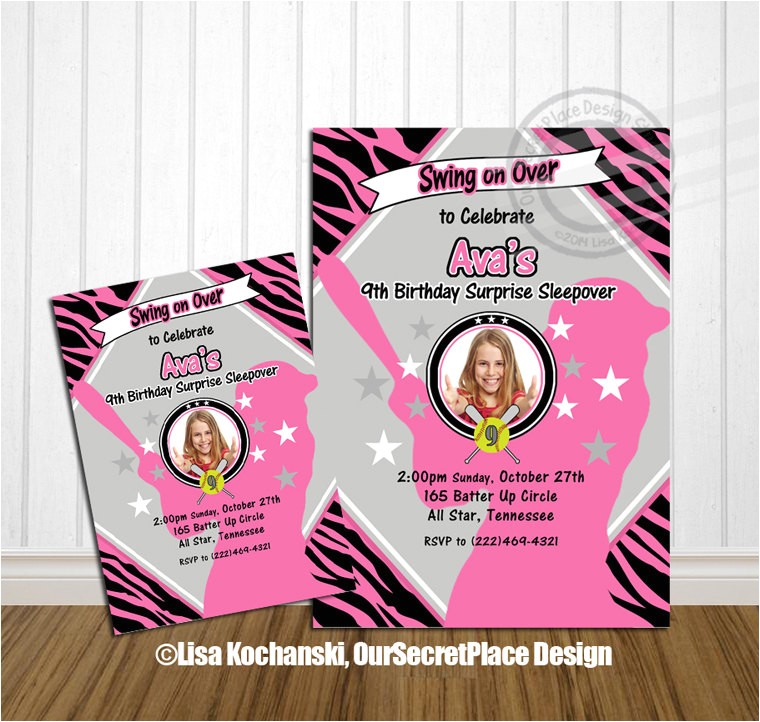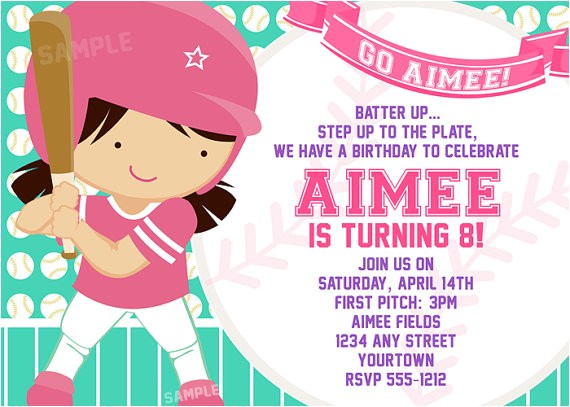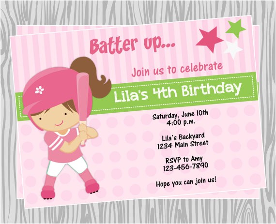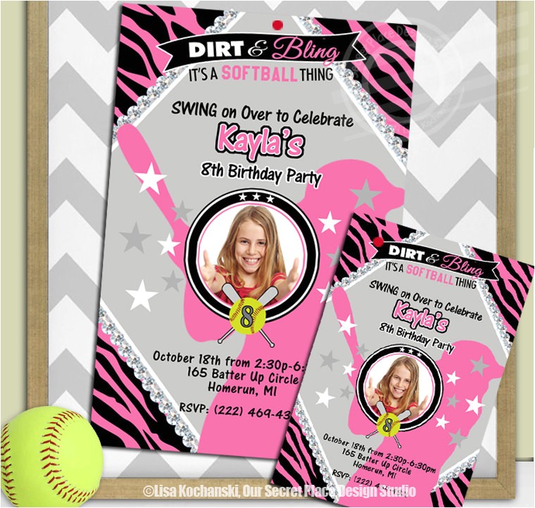 DIY Girl Softball Birthday Party Invitation Coordinating from girl softball birthday invitations