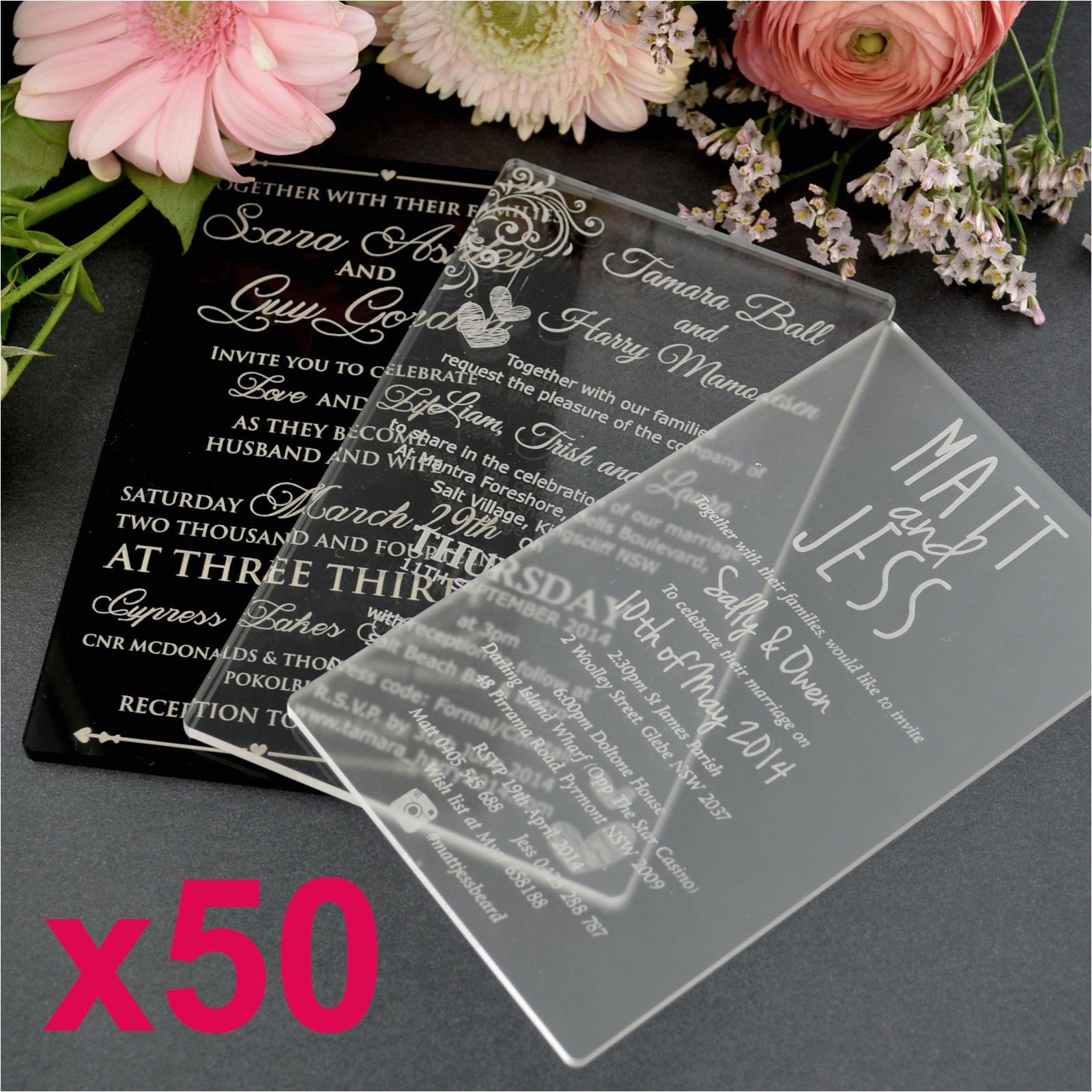 50x personalised favours acrylic wedding invitations 11b from glass wedding invitation cards