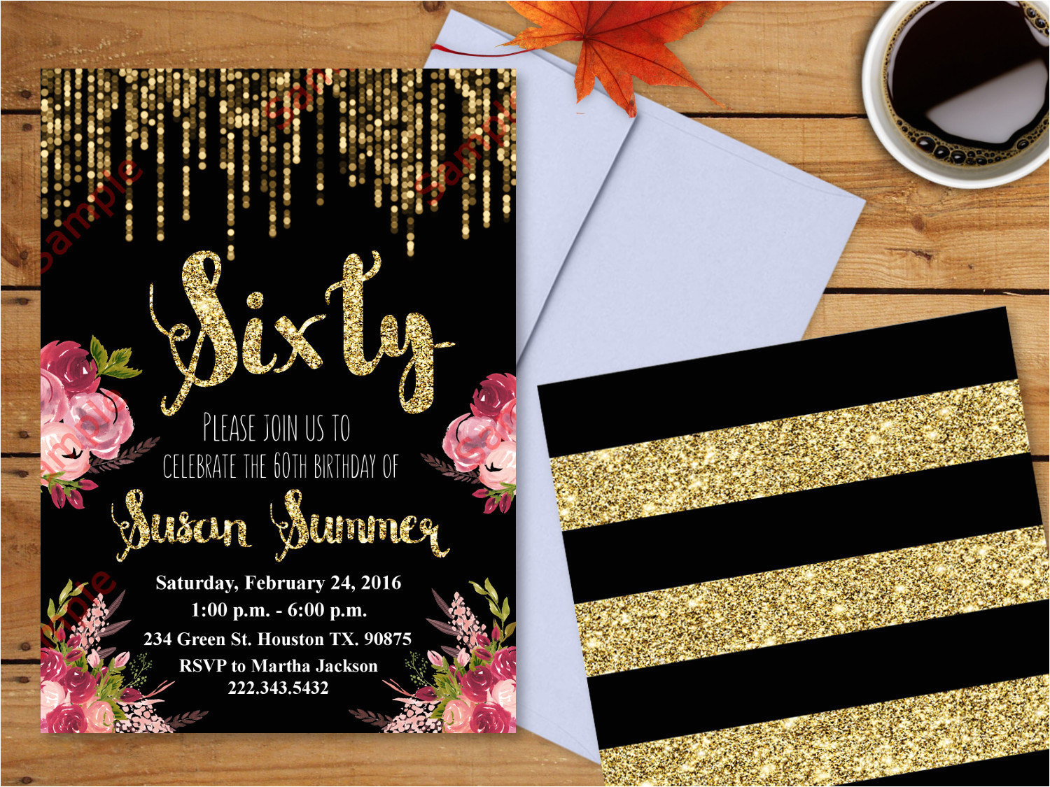 60th birthday invitation gold glitter invitation floral from Glitter Birthday Invitation Template