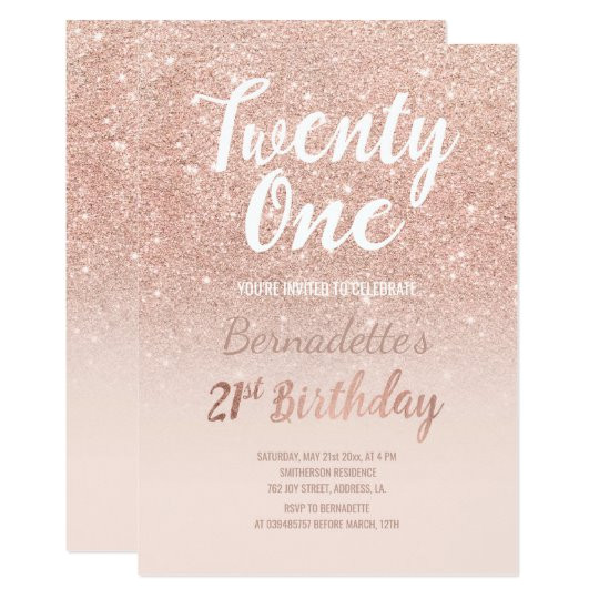 modern rose gold faux glitter 21st birthday invitation from Glitter Birthday Invitation Template