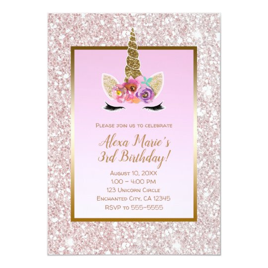 white pink glitter gold unicorn birthday party invitation from Glitter Birthday Invitation Template