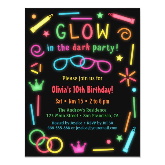 glow party glow in the dark birthday party 5×7 paper from Glow In The Dark Party Invitation Template Free