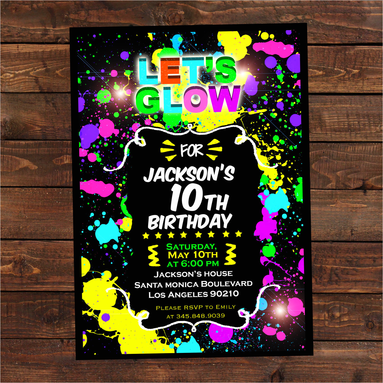 neon glow party invitation glow birthday invitation glow in from Glow In The Dark Party Invitation Template Free