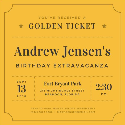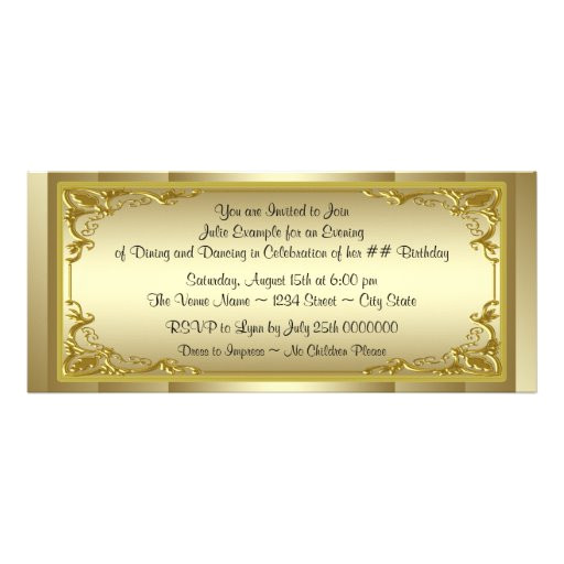 elegant golden ticket birthday party 4×9 25 paper from Golden Birthday Invitation Template