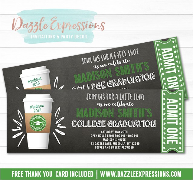 printable starbucks inspired chalkboard ticket graduation from graduation party ticket invitations