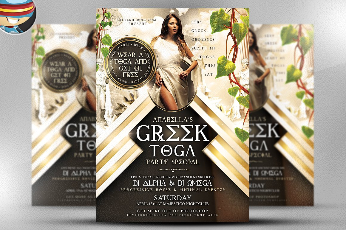 greek toga flyer template flyer templates creative market from Greek Party Invitation Template