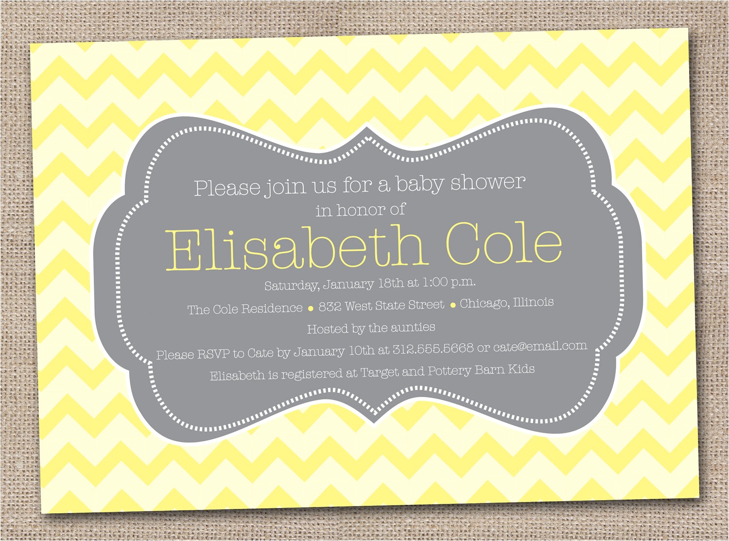 grey and yellow baby shower invites sample: