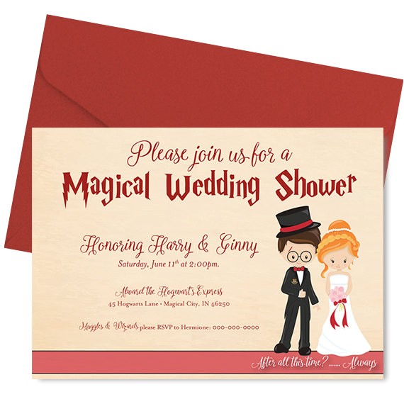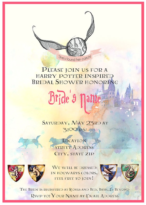 Harry Potter Bridal Shower Invitations Harry Potter Wedding Shower Invitation Harry Potter Bridal and all other pictures, designs or photos on our website are copyright of their respective owners. we get our pictures from another websites, search engines and other sources to use as an inspiration for you. please contact us if you think we are infringing copyright of your pictures using contact page. we will be very happy to help you.