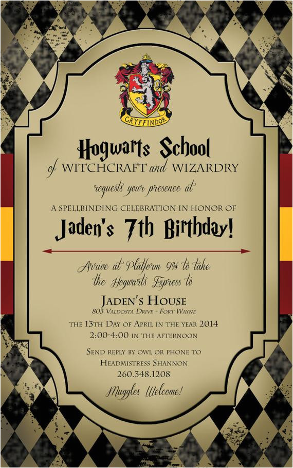 harry potter birthday invitation gryffindor digital file from Harry Potter Party Invitation Template