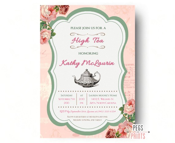 High Tea Bridal Shower Invitation Printable Bridal Tea Party from high tea invitation wording bridal shower