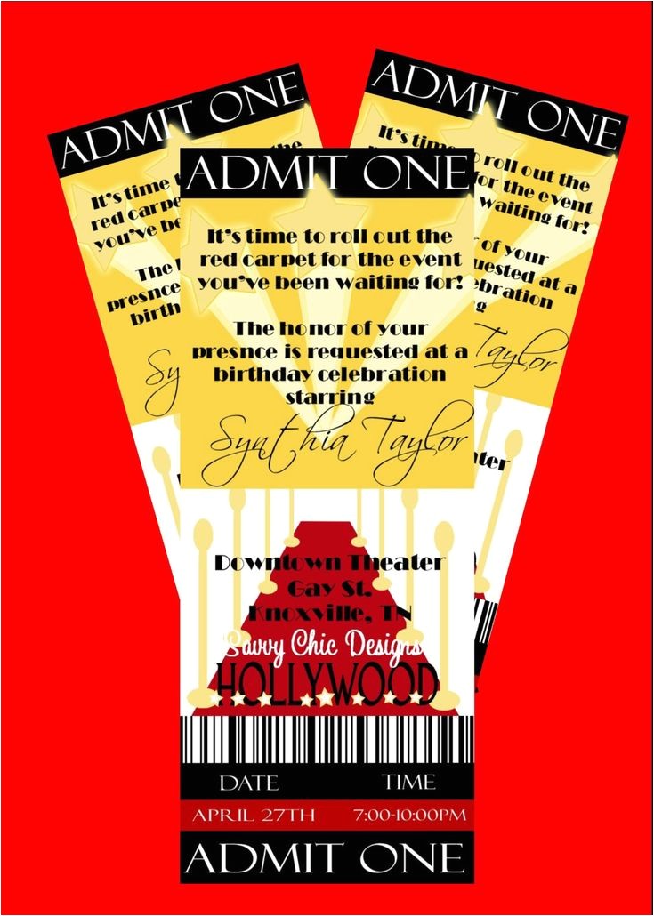 hollywood red carpet party ticket invitations print your from hollywood party invites printable