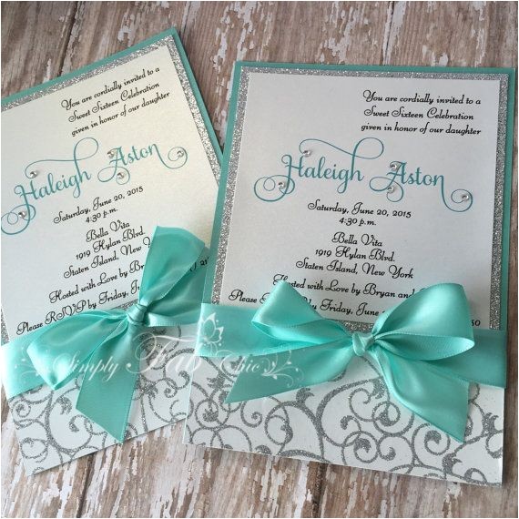 sweet sixteen teal and silver glitter custom handmade from homemade quinceanera invitations