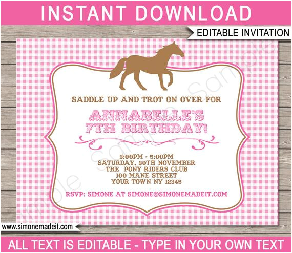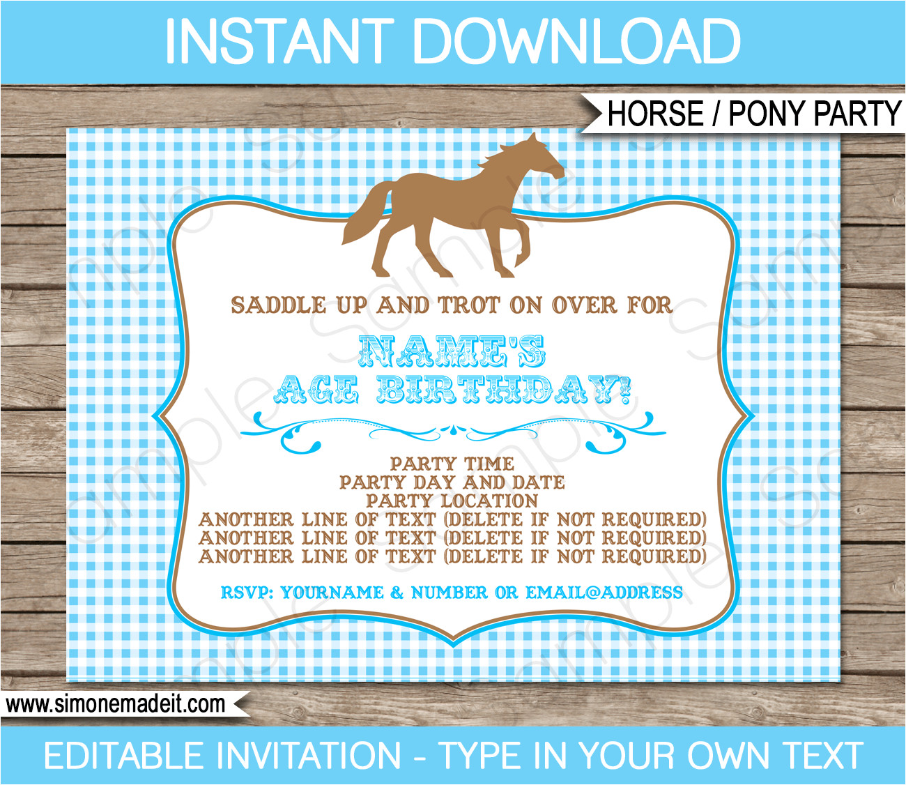 horse birthday party invitations pony party from Horse Birthday Invitation Template