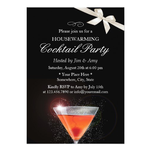 elegant black ribbon housewarming cocktail party 5×7 paper from housewarming cocktail party invitations
