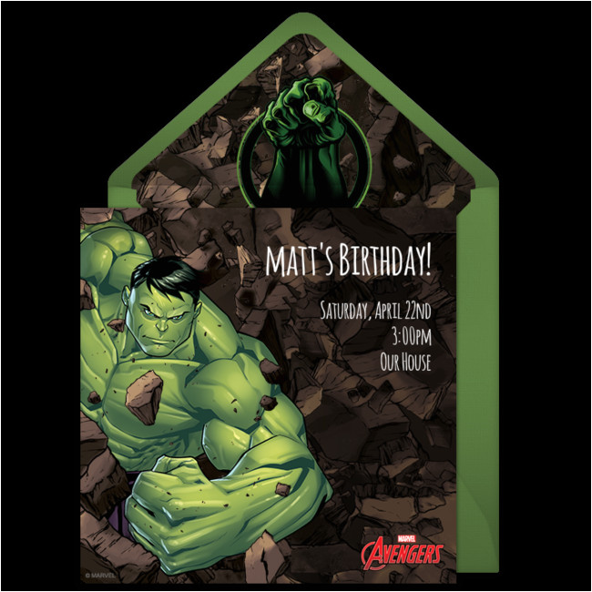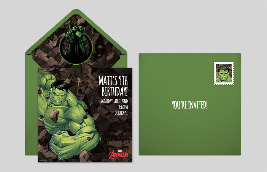 free avengers online invitations punchbowl punchbowl from Hulk Birthday Invitation Template