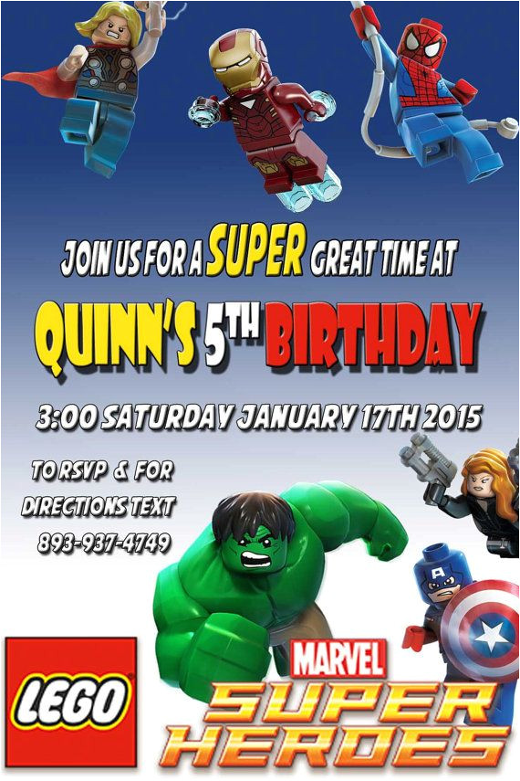 printable lego marvel birthday party invitation digital from Hulk Birthday Invitation Template
