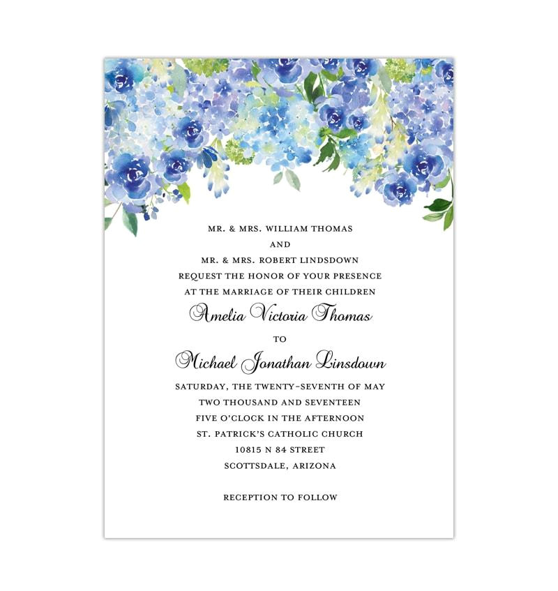 blue watercolor hydrangea wedding invitation cards from Hydrangea Wedding Invitation Template