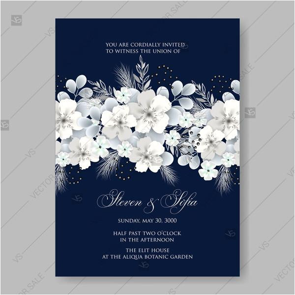 white hydrangea on blue background vector floral card for from Hydrangea Wedding Invitation Template