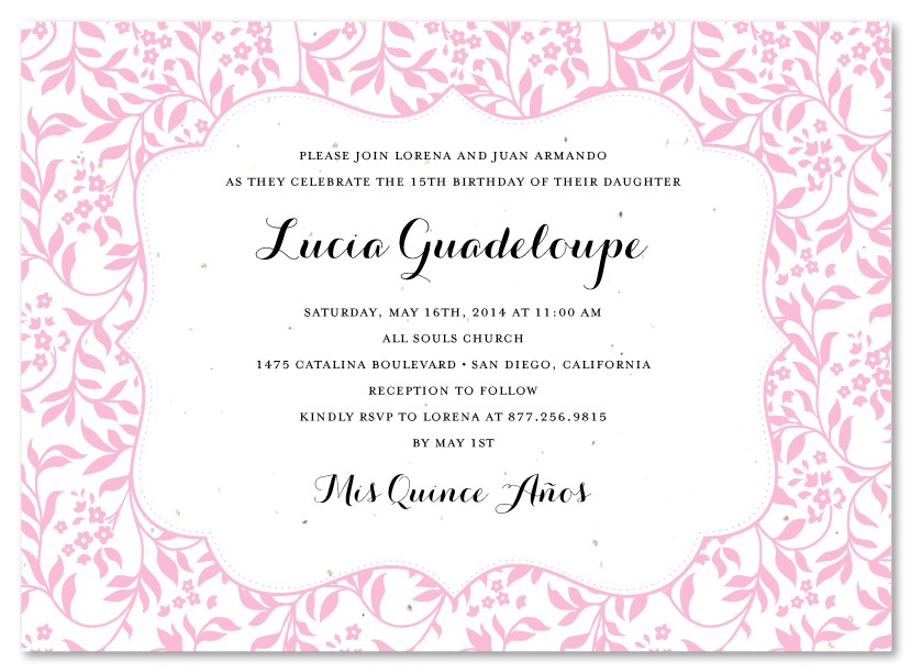 This is the most used verse for your quinceanera invitations . in view of that unconventional ask that girls have is, get we put the two last names? Many quinceaneras just put one, but it is up to you and your parents. upon some invitations even the last reveal is left out, so basically all goes.