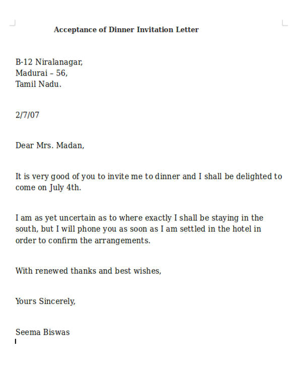 Invitation Letter Dinner Party Example sample: